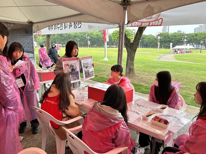 당일 비가 와서 마라톤을 뛰기 전부터 부스를 진행했는데요, 미리 준비를 한 덕분에 참여자분들을 바로 응대할 수 있었답니다!