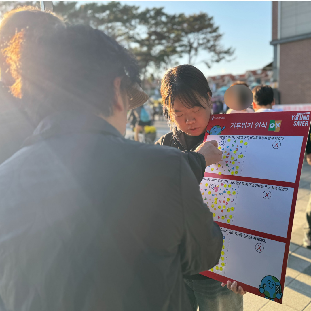 지난 11월 울산 대왕암 공원에서 기후위기와 아동권리 캠페인을 울산 시민들 대상으로 진행하였습니다.